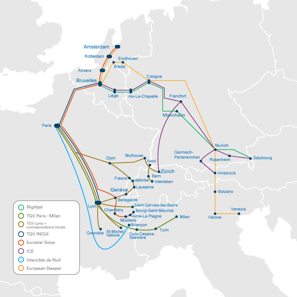Amateur de snowboard ou adepte de la godille, pro de la descente en luge ou roi de la raclette, la montagne vous appelle ! Pour les sports d’hiver ou juste un séjour à la montagne, entre amis ou en famille, rien de tel que le train pour rejoindre les sommets enneigés d'Europe.